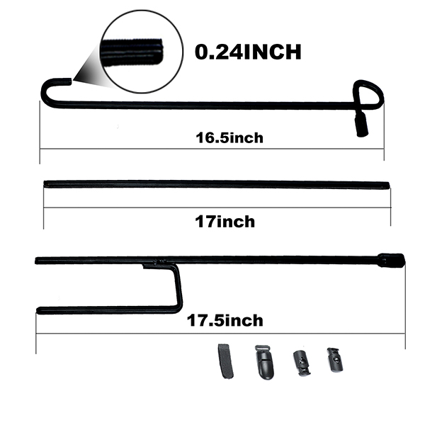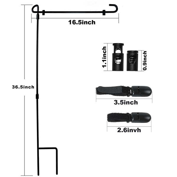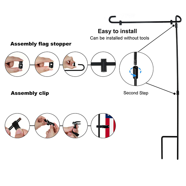1. Black metal three-piece decorative garden flag pole frame screws together with ease and this design is very easy to storage;