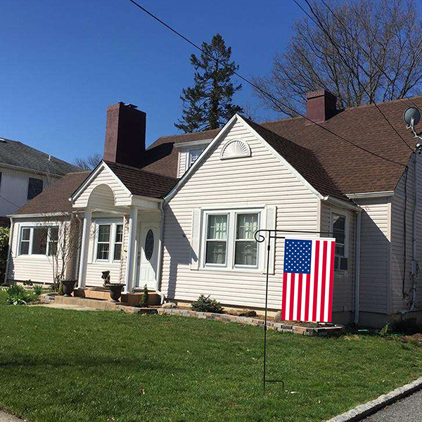 To solve this issue, there is a special anti-blow design on both sides of the flagpole.HOOSUN garden flag stand cames with two Anti-wind Spring Stoppers and a anti-wind clip, The flag wasn't run away when the strong wind and heavy rain come.