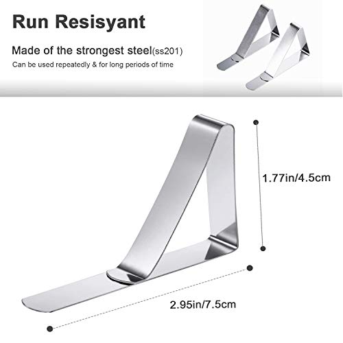 - ✔DURABLE & RUST PROOF:Made of stainless steel, durable and rust resistant, with nice finished with smooth edge which are great on hold tablecloths tight & lays flat;